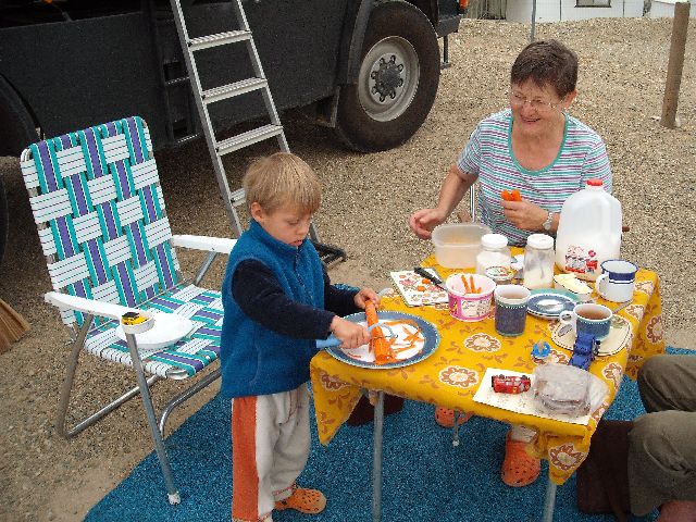 angenommen. Tommi hat beim Karotten schälen geholfen.