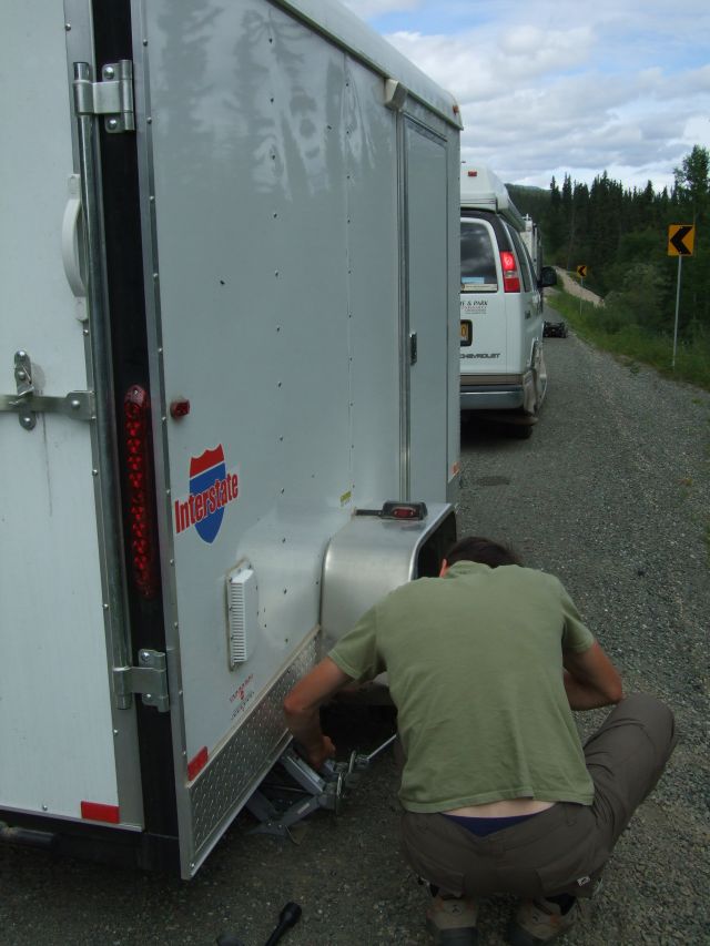 an den Reifenwechsel des Anhängers gemacht. |
